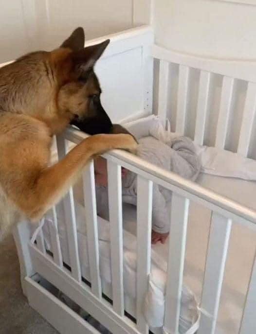 Benson sat proudly beside the crib, the gentle guardian of the newest member of the family.