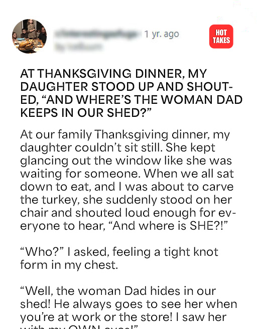 At Thanksgiving Dinner, My Daughter Shouted, ‘And Where’s the Woman Dad Keeps in Our Shed?’