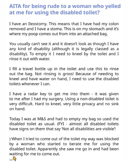 AITA For Being Rude To A Woman Who Yelled At Me For Using The Disabled Toilet?