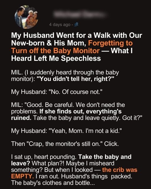 My Husband Went for a Walk with Our Newborn & His Mom, Forgetting to Turn off the Baby Monitor — What I Heard Left Me Speechless