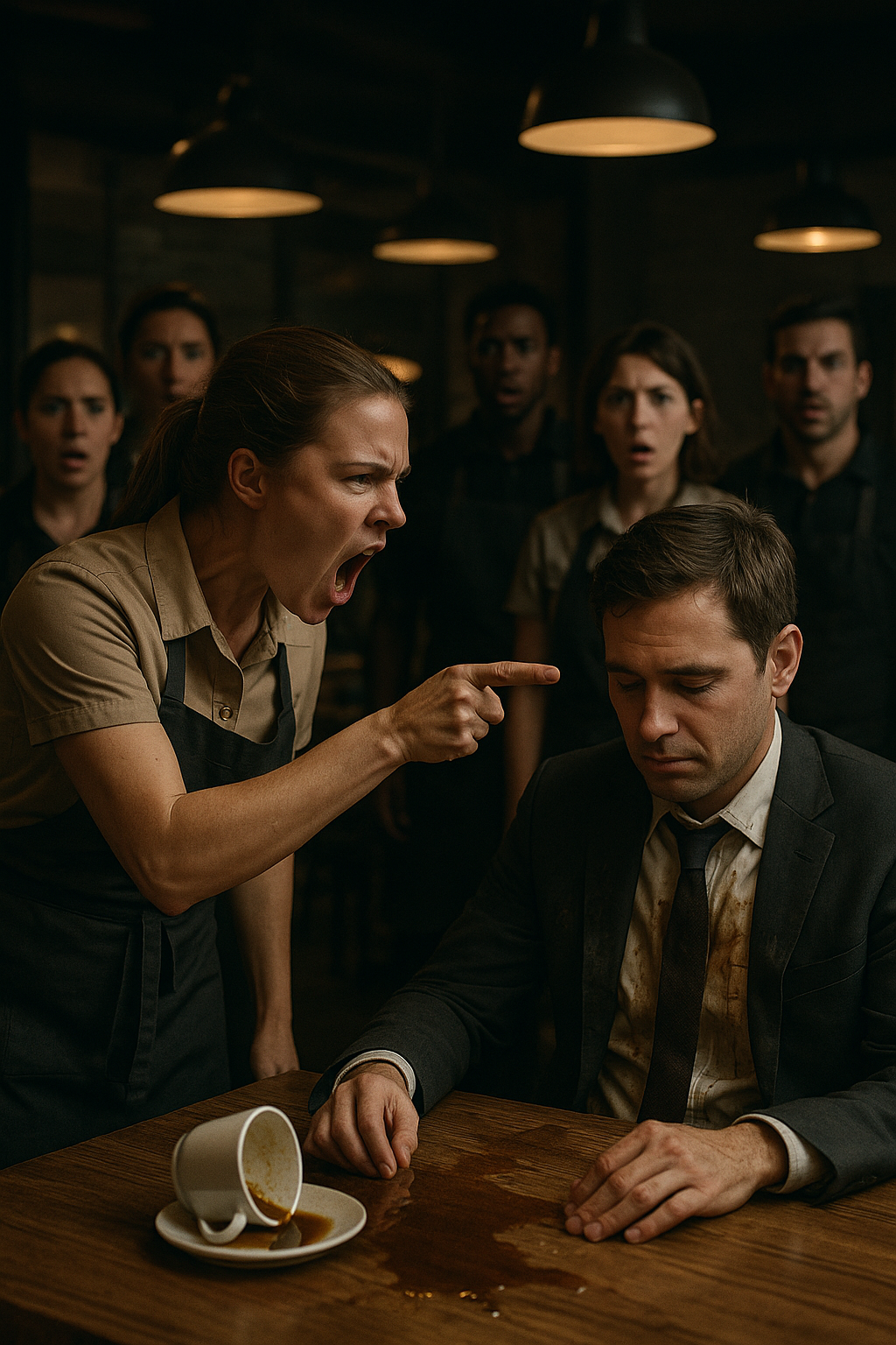 The café fell into a suffocating silence. You could hear only the ticking of the old clock in the corner and Nancy’s shaky breath as she wiped her tears with the back of her hand. All eyes were on Emily.