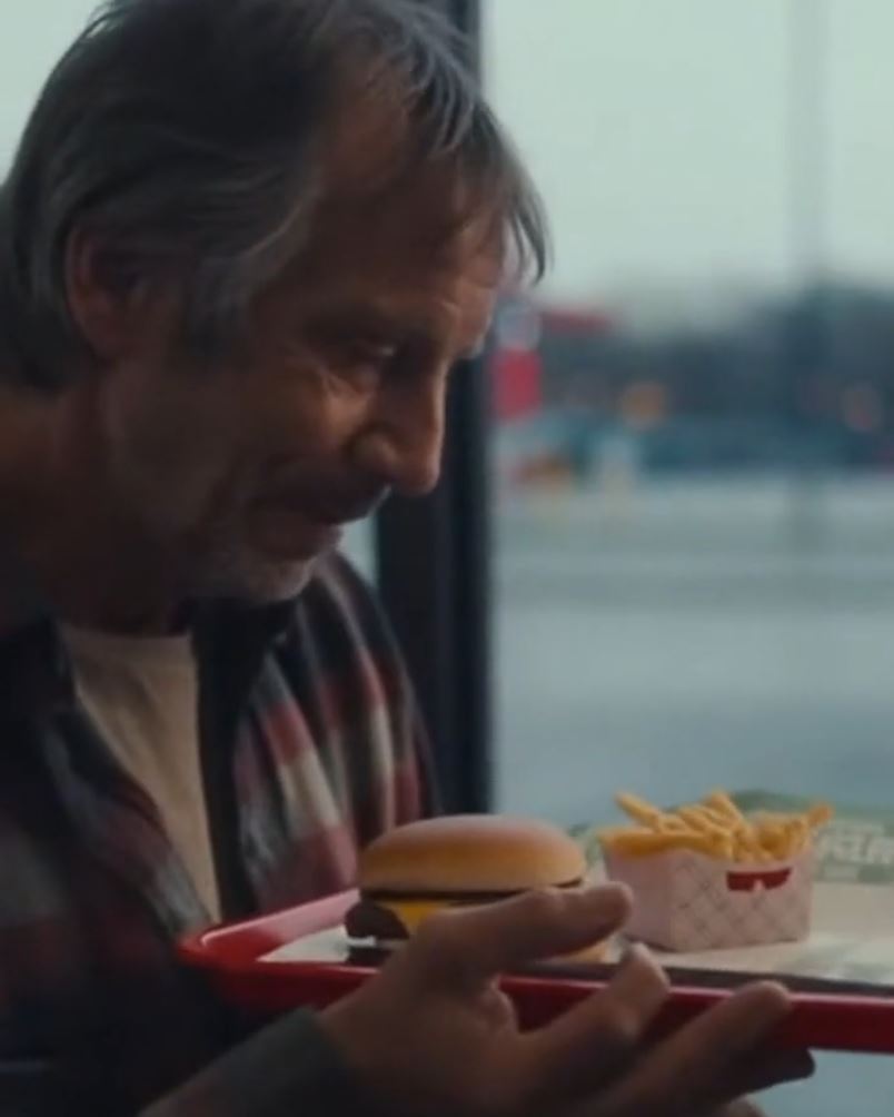 I rang up a value meal and gave the man an extra cup for water. He took a seat by the window, cradling the tray like it was gold.