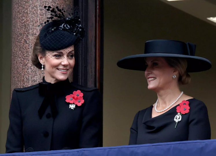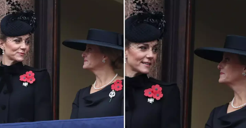 This past weekend, Kate joined King Charles III and other royal family members for the moving Remembrance event. Queen Camilla was notably absent due to a chest infection. Kate was expected to stand solo on the central balcony, but instead, she was accompanied by Sophie, the Duchess of Edinburgh, on a nearby balcony.