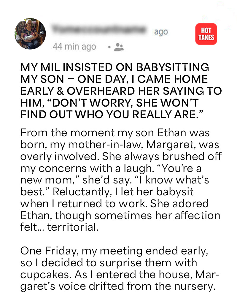 At first, I told myself it was sweet how much she cared. She visited daily, always cooing over Ethan, always offering advice I didn’t ask for.