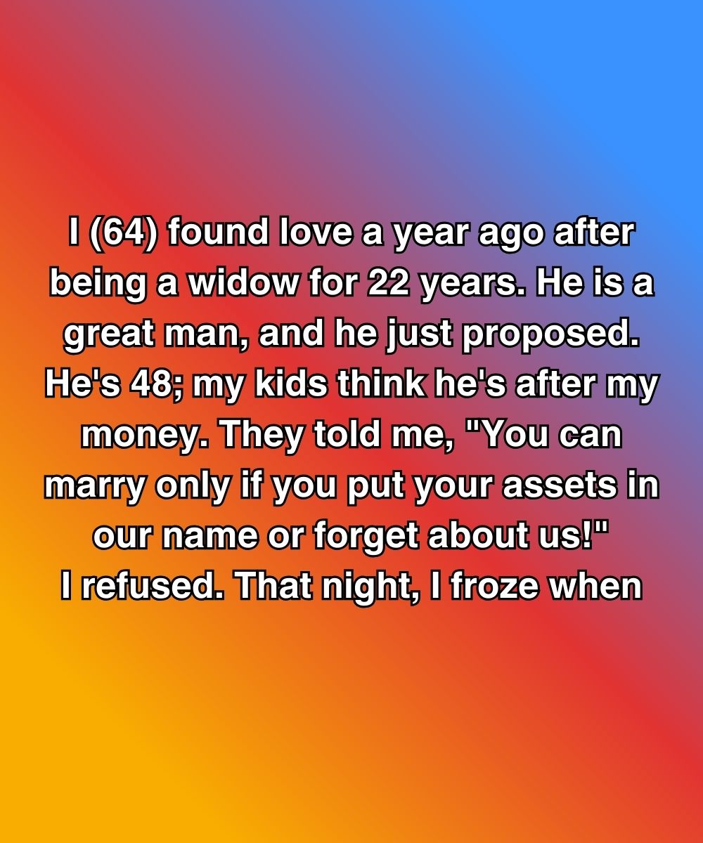 That night, I sat at my kitchen table until 2 a.m., staring at the ring on my finger. My late husband, Alfredo, passed from cancer when he was just 45. I raised three kids alone, worked two jobs until I was 58, and still managed to pay off the house and help them through college. And now, because I finally met someone kind, someone who holds my hand just because—it’s war?
