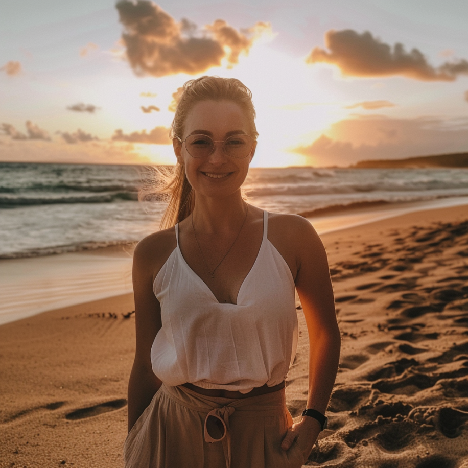 We were on this beautiful beach, and I was wearing this new dress I bought just for the trip. I felt good about myself, which is rare these days after two kids and all. I asked Luke, “Can you take a picture of me with the sunset?”