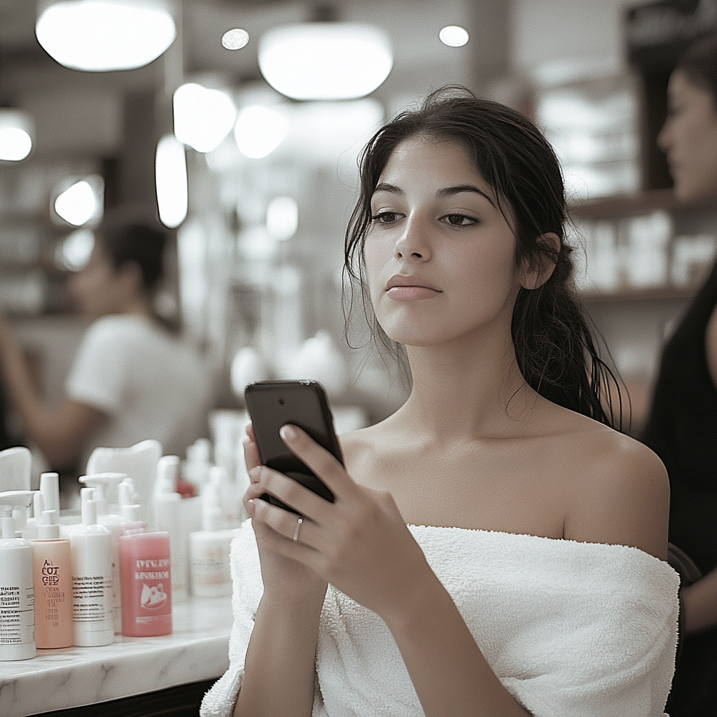 “Excuse me,” I said, standing abruptly. I grabbed her phone quickly when she wasn’t looking. “I need to use the restroom.”