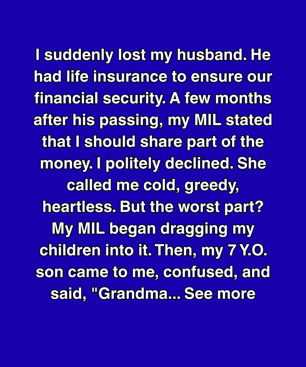 I suddenly lost my husband. He had life insurance to ensure our financial security. A few months after his passing, my MIL stated that I should share part of the money. I politely declined. She called me cold, greedy, heartless. But the worst part? My MIL began dragging my children into it. Then, my 7 Y.O. son came to me, confused, and said, “Grandma said you’re hiding Daddy’s money because you don’t want to help us.”
