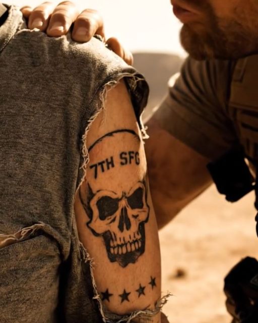 The center patch was a skull wearing a Green Beret.